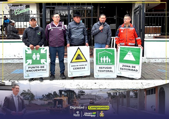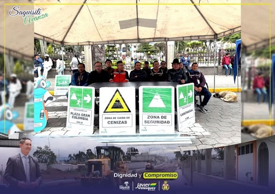 En este importante evento, la Secretaría Nacional de Gestión de Riesgos entregó señalética volcánica al Municipio de Saquisilí, representada por nuestro alcalde, Mg. Javier Velásquez Martínez.